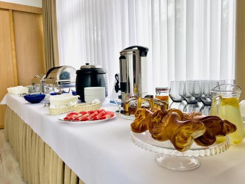 Dostępne są także noclegi dla gości przyjezdnych (w tym śniadania w formie bufetu), co ułatwia organizację w krótkich terminach. Rezerwacja i wstępna wycena odbywa się telefonicznie lub mailowo – zachęcamy do kontaktu.